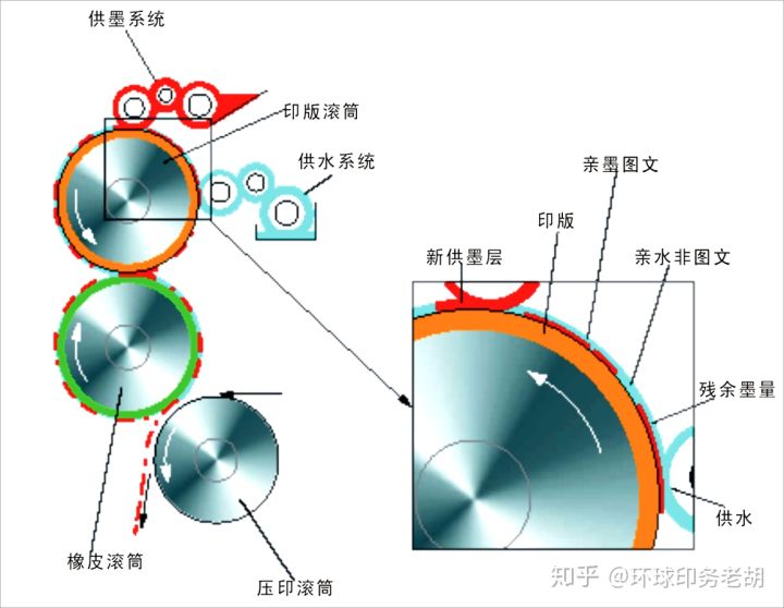◆首先由印版部件的供水裝置向印版的非圖文部分供水,從而保護了印版的非圖文部分不受油墨的侵濕。